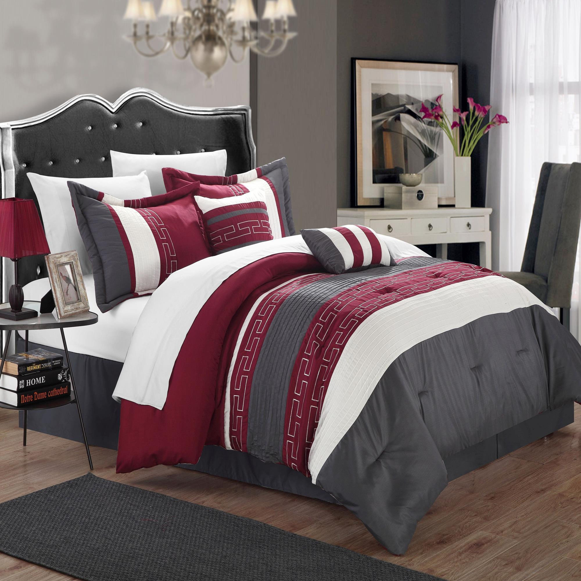 Chic Home Carlton Burgundy Grey Off White 6 Piece Comforter Bed In A Bag Set